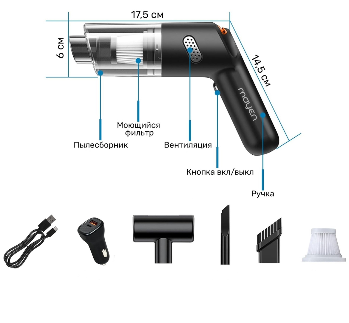 в автомобиле, таких как щели между сиденьями, вентиляционные отверстия, и стыки панелей. Она позволяет добраться до самых скрытых уголков салона. Вне автомобиля ее можно использовать для очистки домашних объектов, например, между подушками дивана или вокруг бытовой техники.